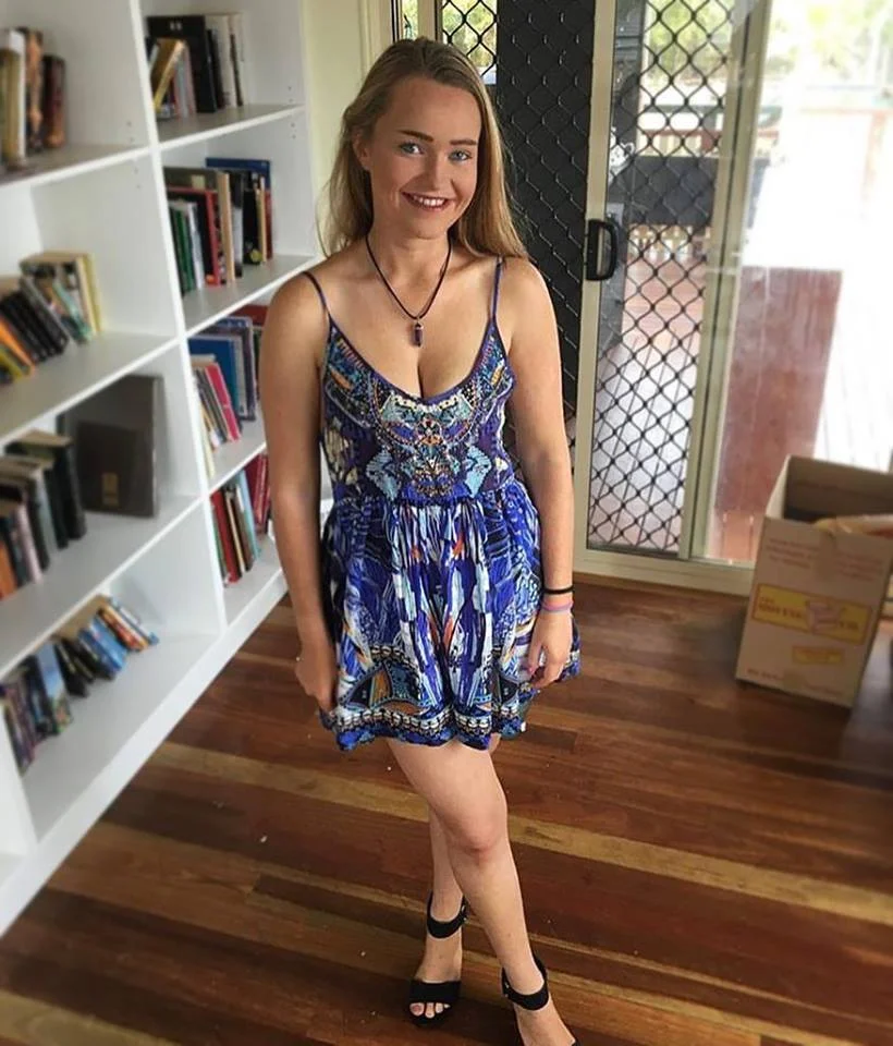 Danika Whitehead looking amazing in our Camilla Rhythm & Blue Playsuit.