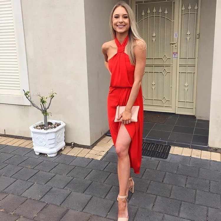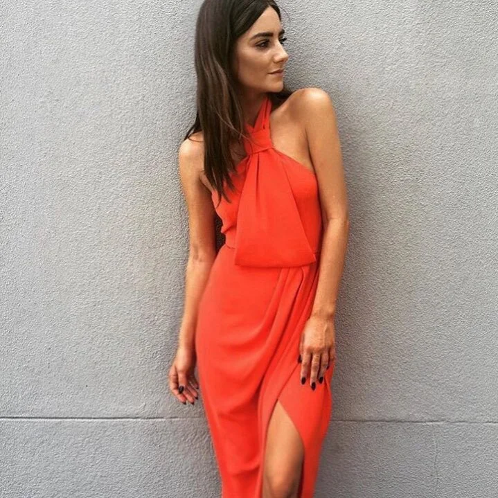 Danika Whitehead looking stunning in our Shona Joy Core Knot Dress in Coral!
